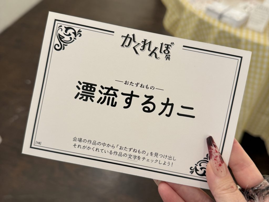 カードに書かれた「おたずねもの」を作品の中から見つけると、素敵なプレゼントがもらえるというイベントです🎵