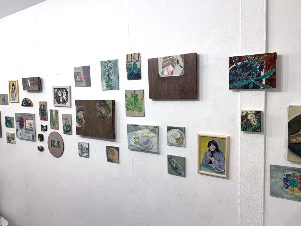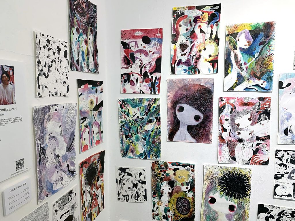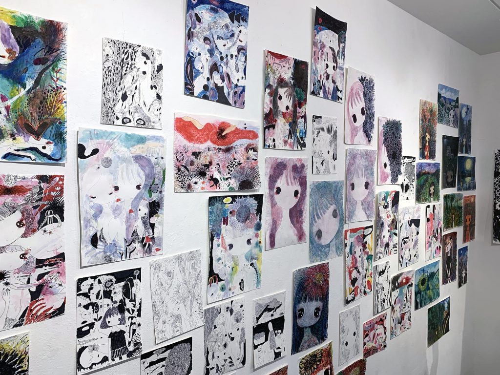 たくさんのドローイング作品が並び、ずっと観ていたい気持ちになる さとみさんの作品。