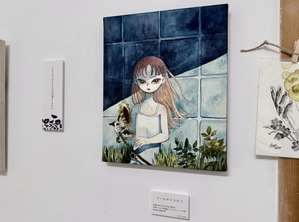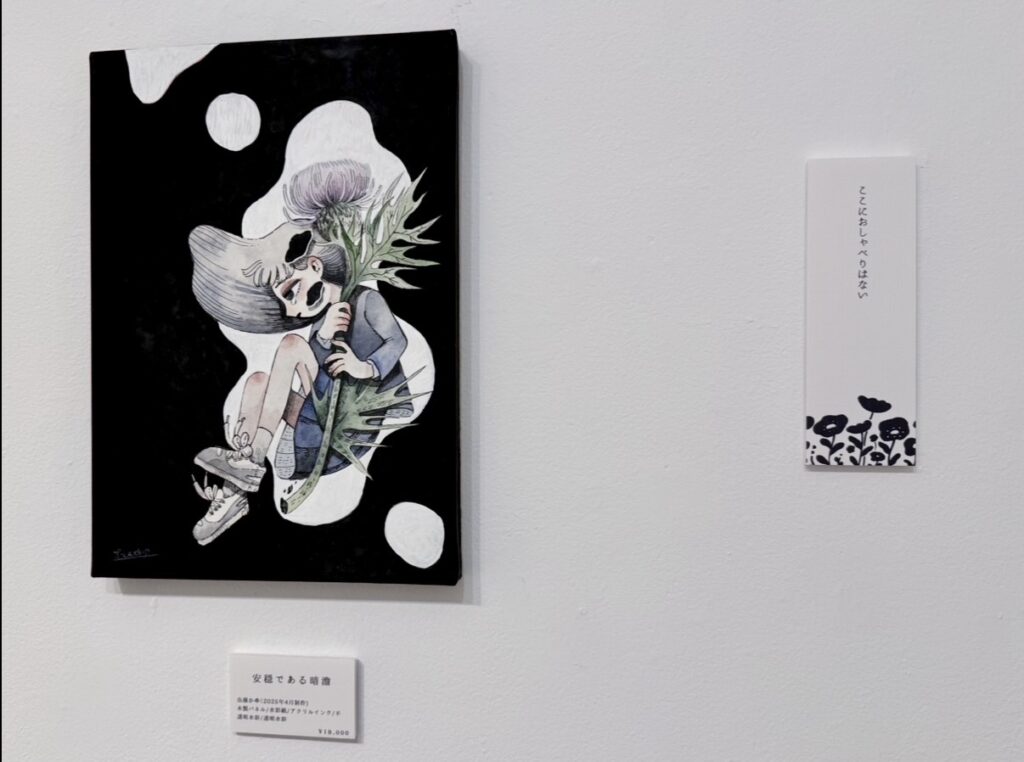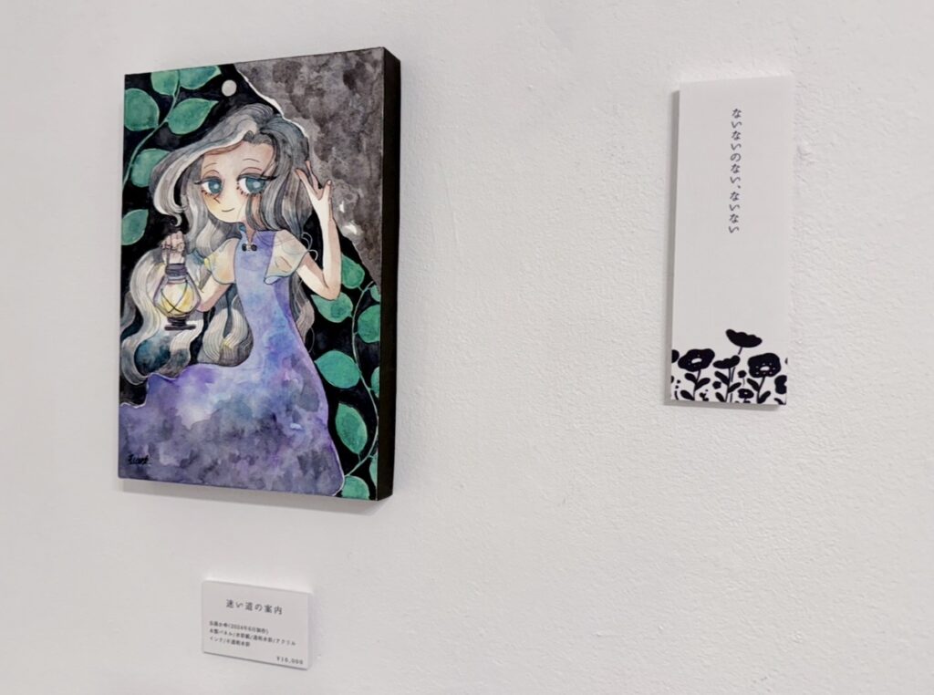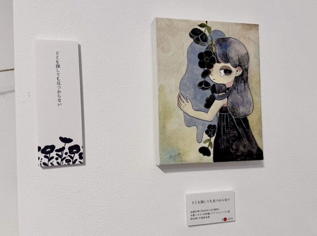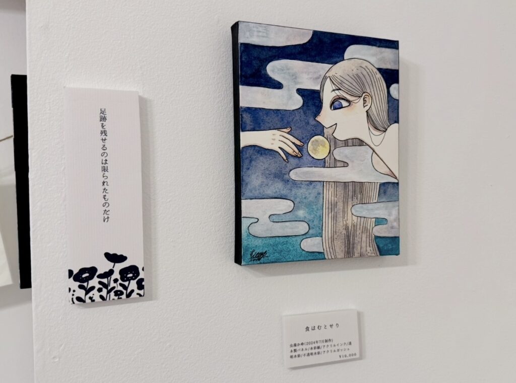 今回の展示では「近しい人の不在・喪失」をテーマにしたイラスト原画を展示されました。