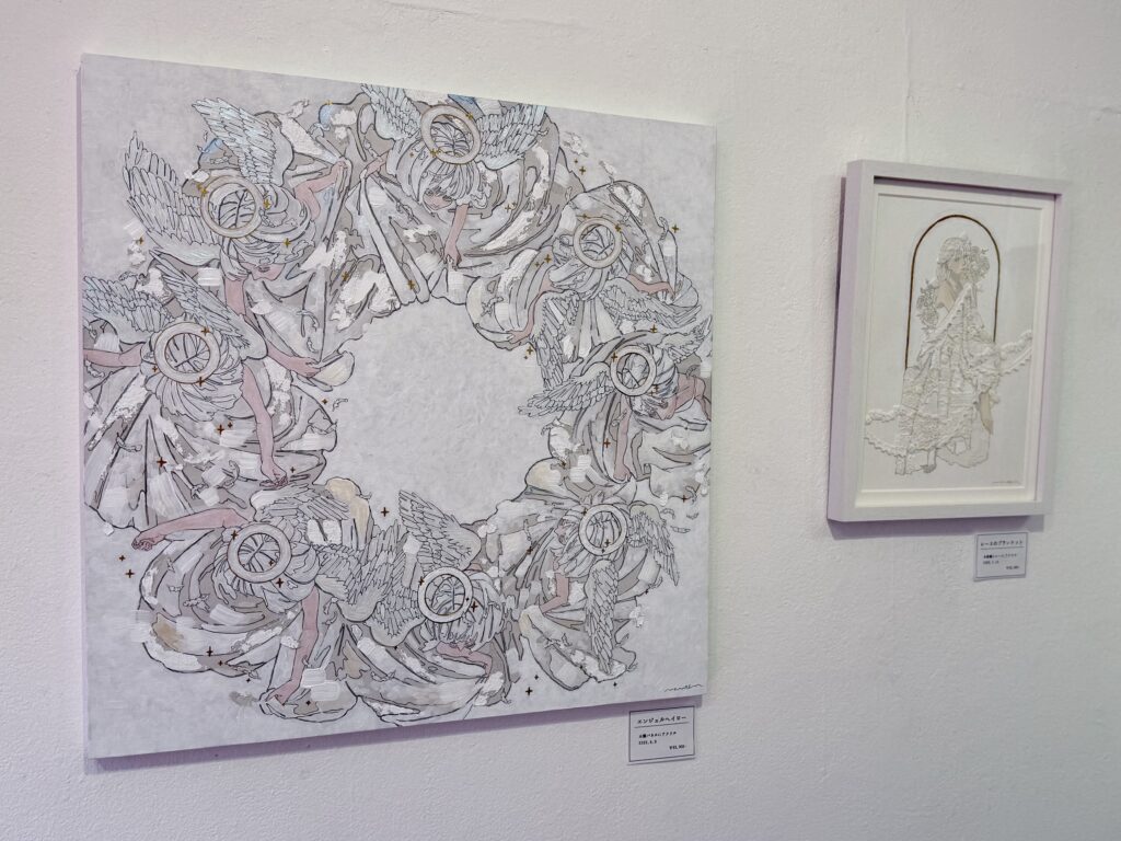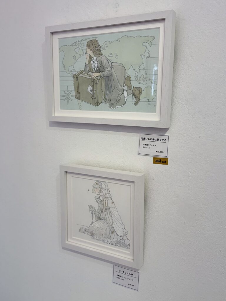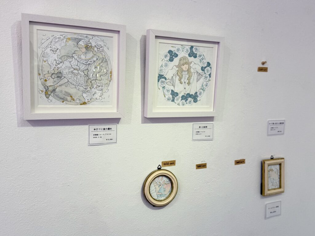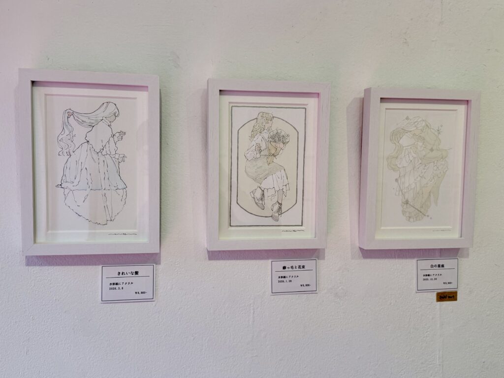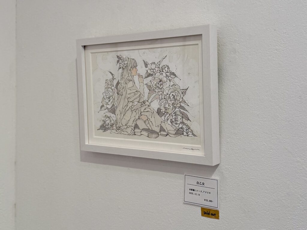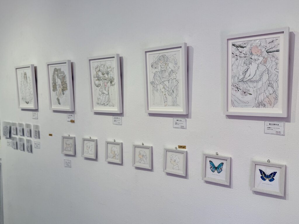 今回の初個展では、線画の原画作品を中心とした展示となっています✨ 白と黒を中心とした色で創り出された世界観がとても幻想的です⭐️