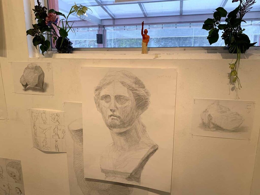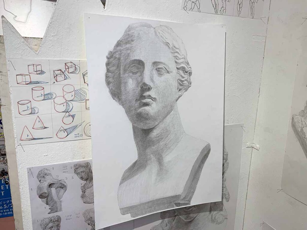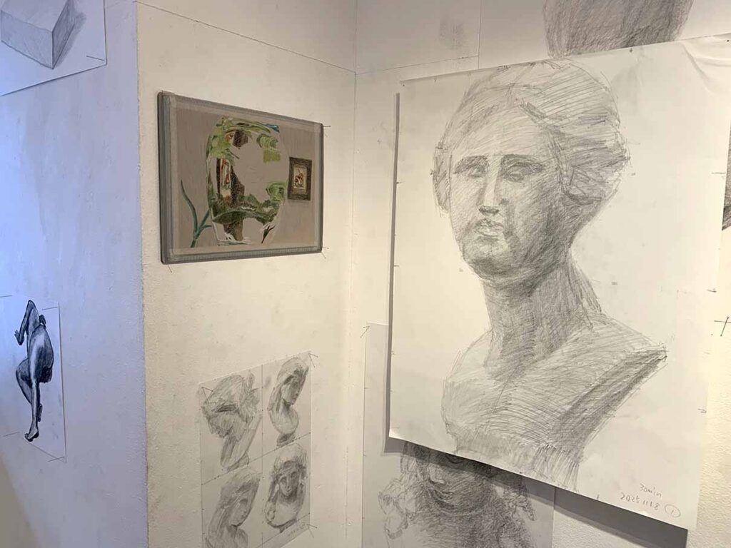 展示ではデッサンの修作の展示となっていますよ。