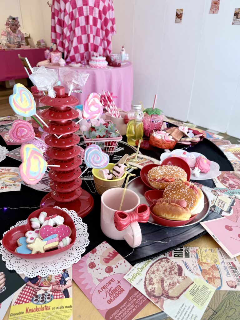 キャンバスがホイップやフリル、リボンなどでデコられていて、作品1点1点がケーキの様になっているのがキュートで美味しそうです🤤💕