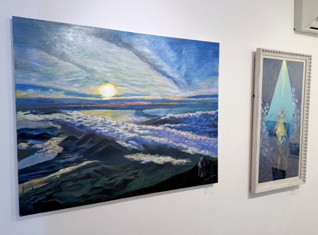 展示空間の中で一際目を引く大きな山の作品は、うぬめさんは実際に富士山に登頂された際に見えた景色をモデルに描かれた作品となっています⛰️