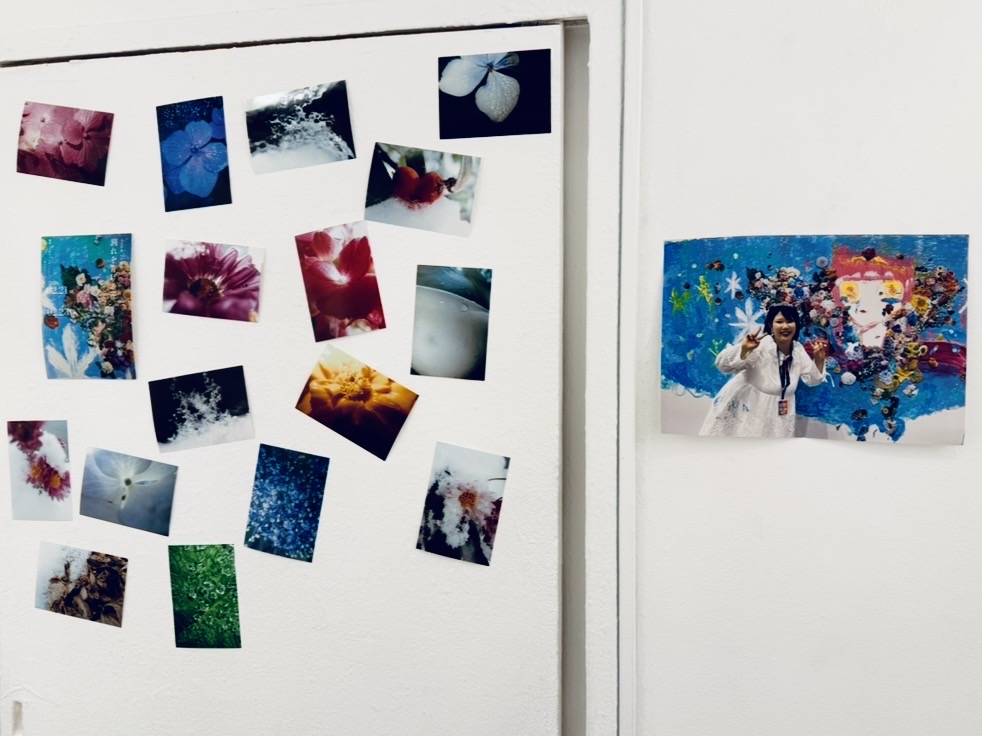 イラストにお花の写真がコラージュされていたり、ポートレートにはフリルやシールでデコレーションされていたり…