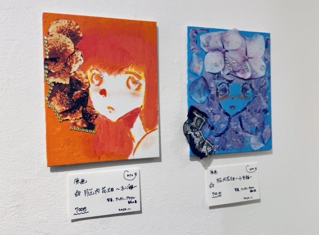 女の子が描かれたイラストの原画や、女の子が映ったポートレート作品も展示されています📷