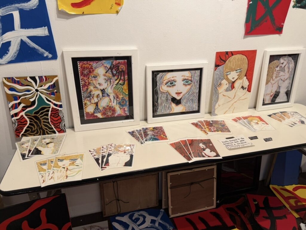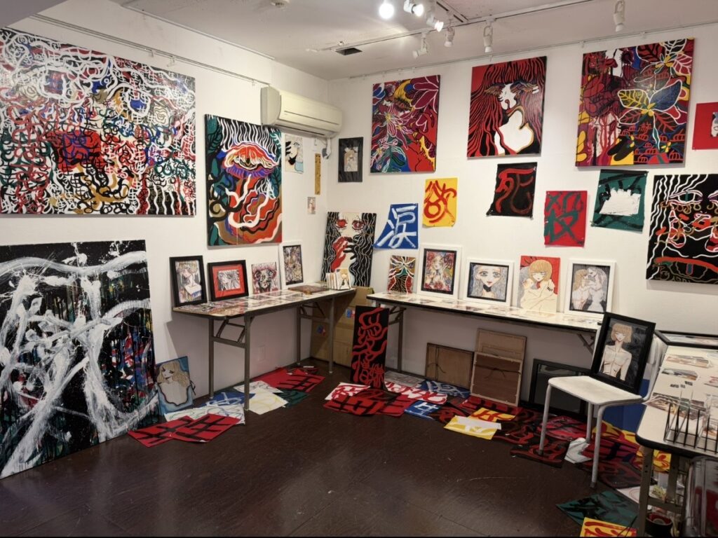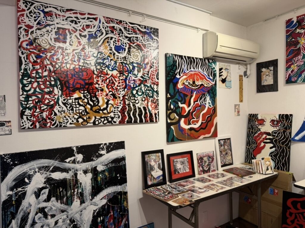 壁一面に大小様々な原画作品が飾られており、作品1点1点からパワフルなイメージが感じられます🔥