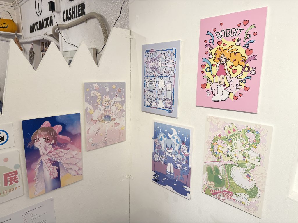 今回は「パステルカラーの女の子」がテーマになっており、華やかなイラストたちが壁にずらりと並びます!