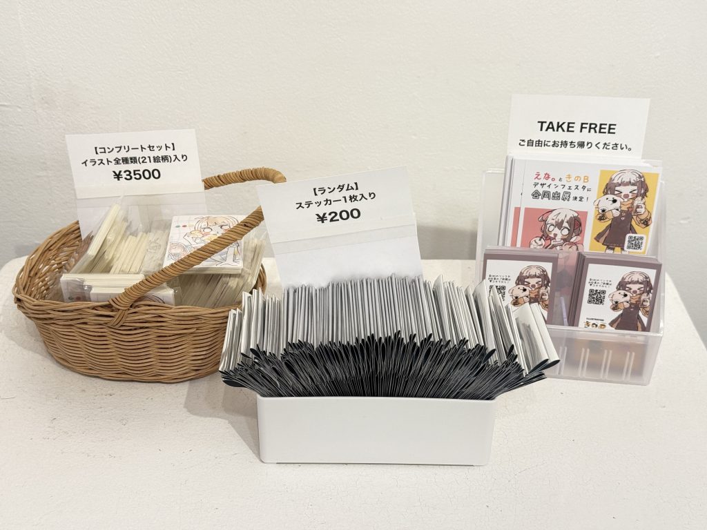また、作家さんのイラストのステッカーがランダムで購入できる楽しいグッズコーナーもございます!