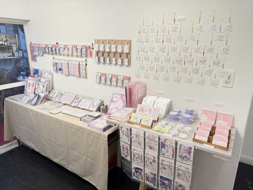 ステッカーや、キーホルダー、バインダーまで種類豊富なグッズがたくさん並んでいますよ!