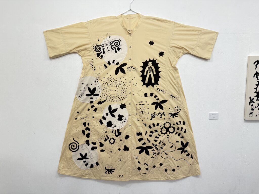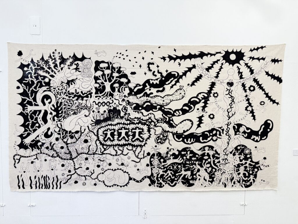 生命の循環をテーマに制作をするNOGCHIさんの作品です。綿布に墨で描かれています。