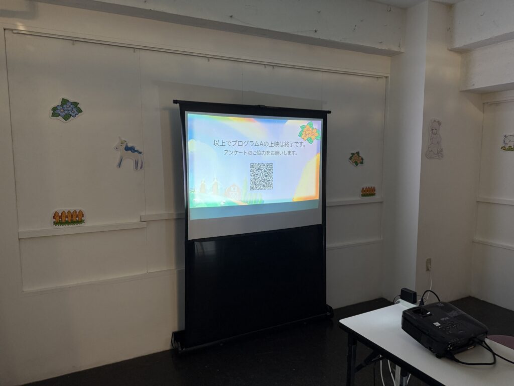 カーテンの先では、今回の展示に参加している20期生有志の、34名の作品上映が行われています!