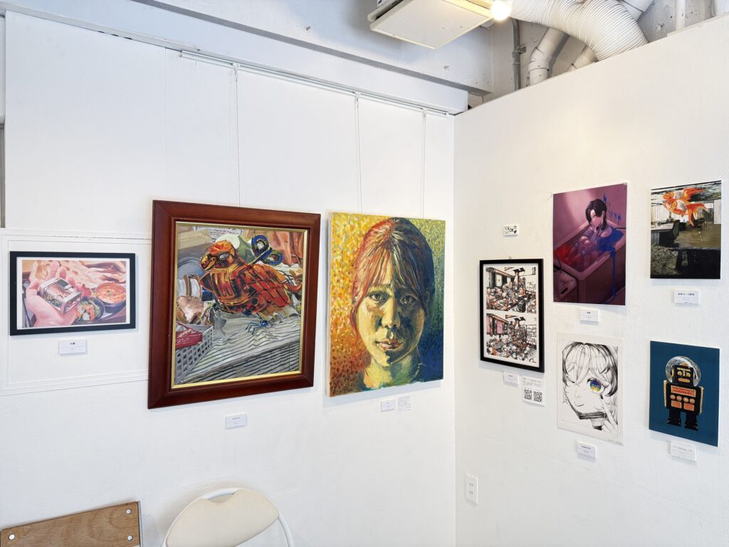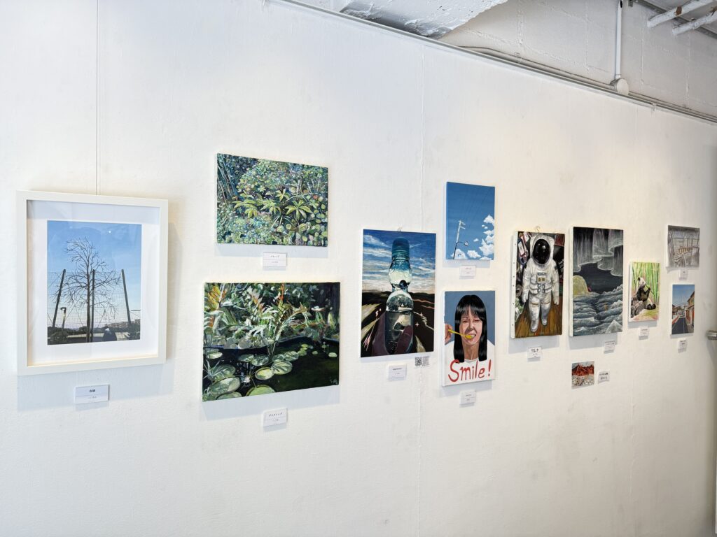 アクリル画やデッサン、デジタルの作品から立体作品など、幅広いジャンルの作品が並びます。