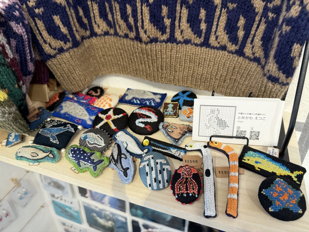 刺繍で生き物たちの柄まで細かく作り込まれたブローチは全て素敵で、どれを身につけようか悩んでしまいます!