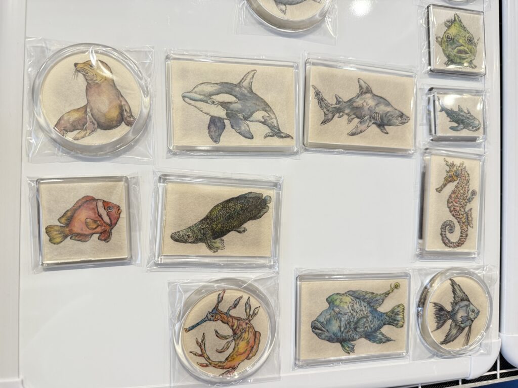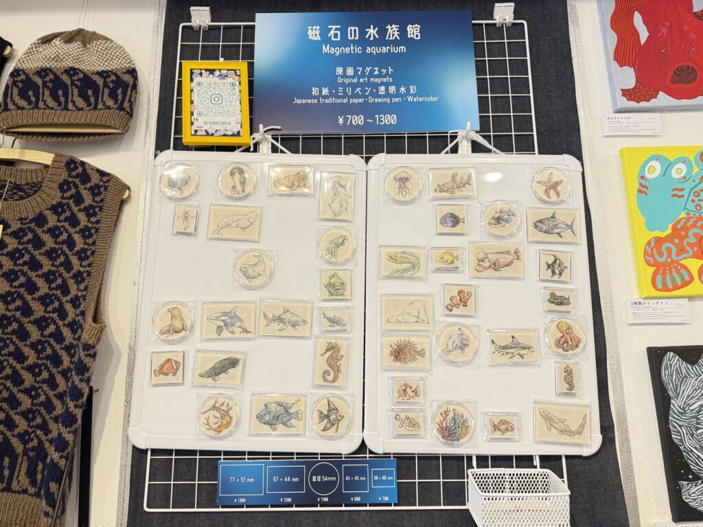 海のいきものたちをモチーフにしたマグネットがずらり!