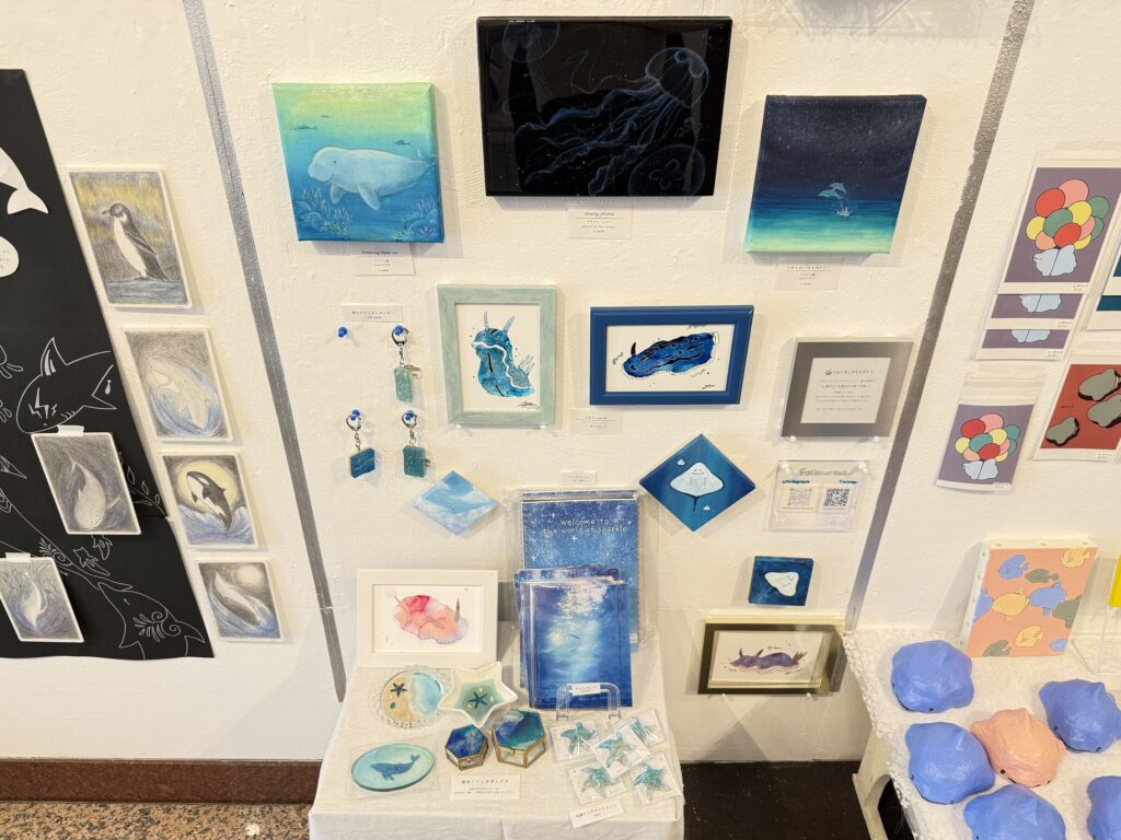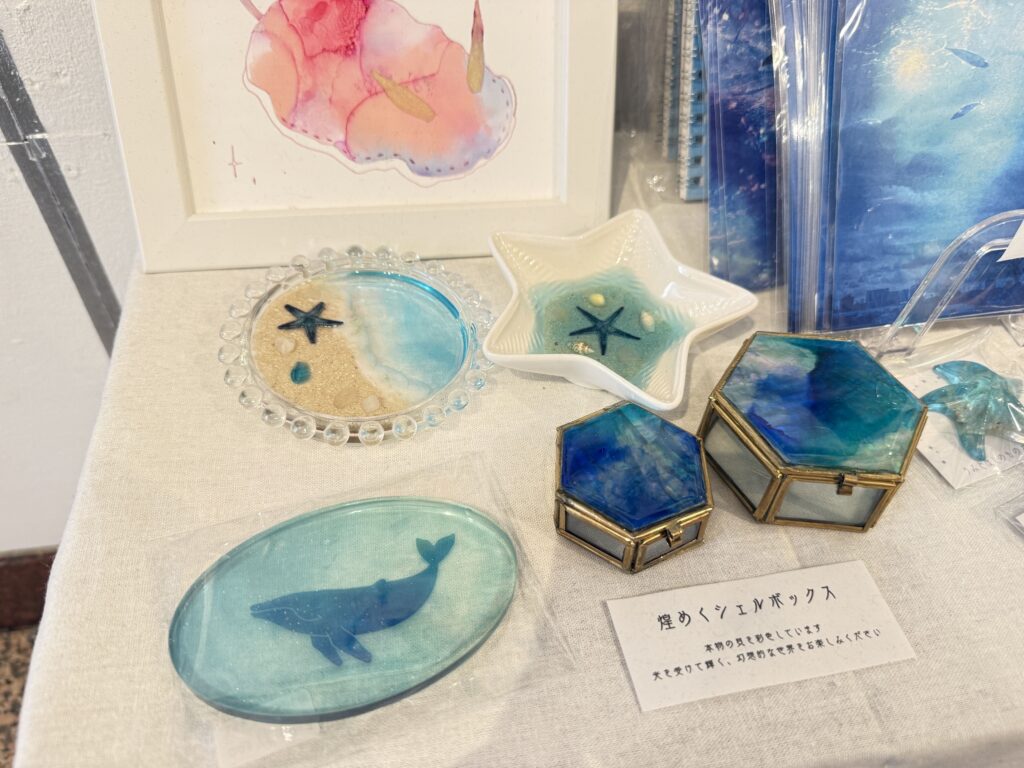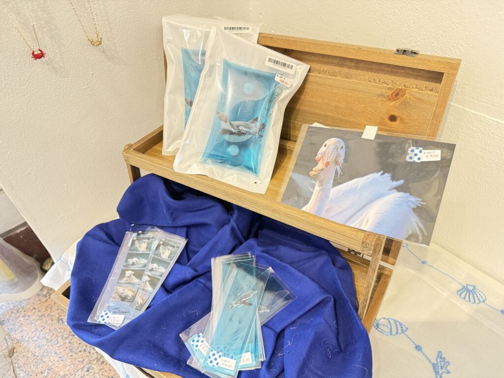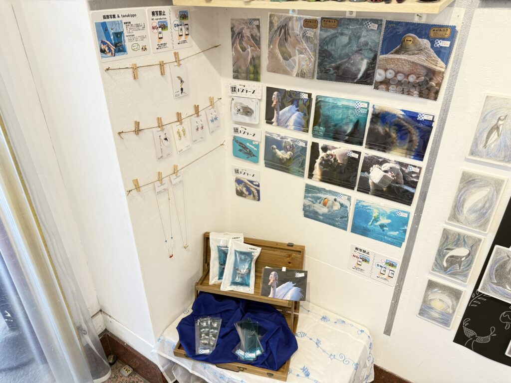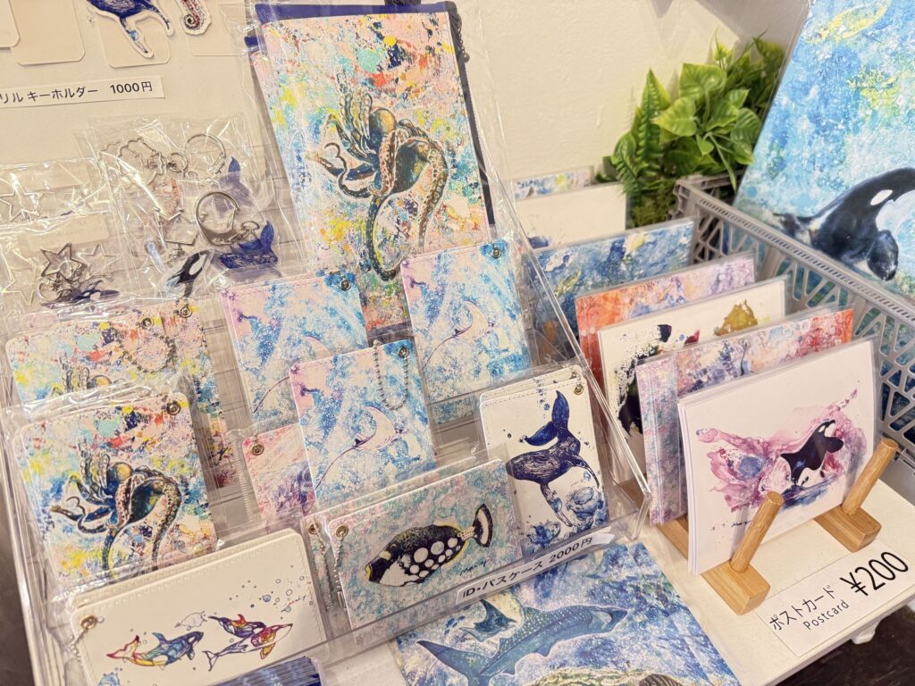 ポストカードやキーホルダー、本物の貝を使用したシェルボックスなど素敵なグッズも販売しておりますので、ぜひお見逃しなく!