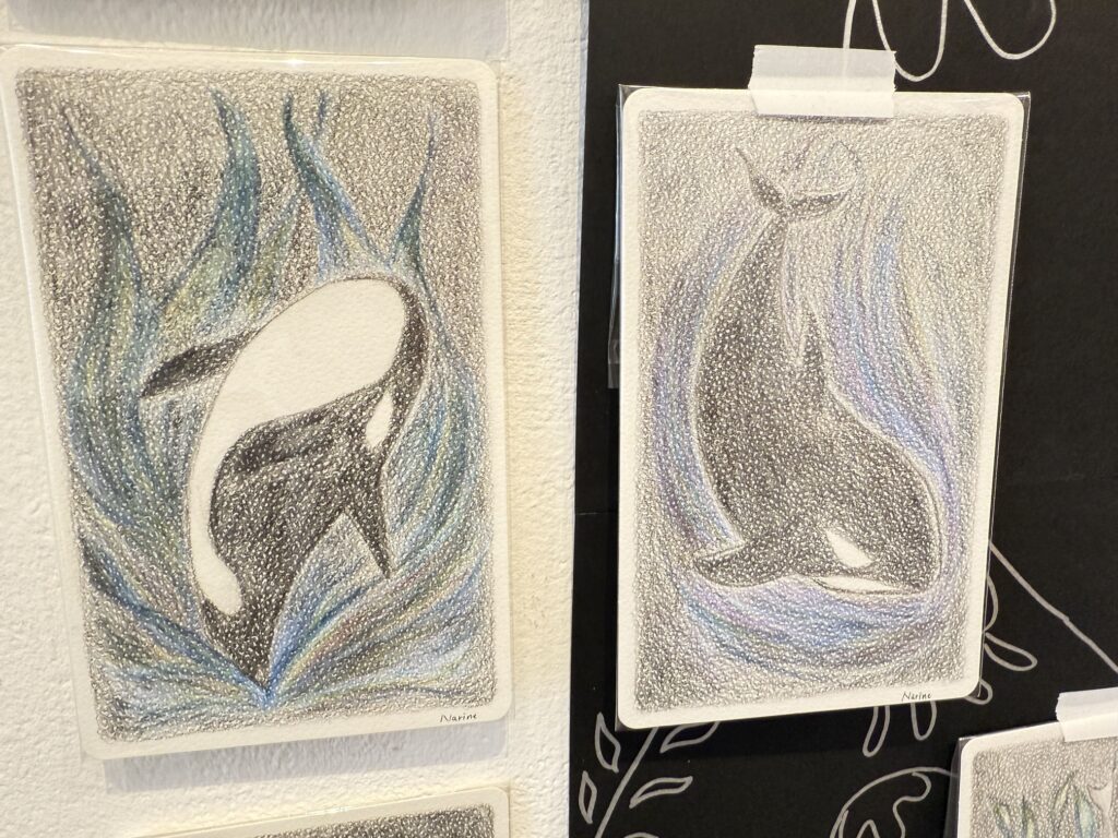 立ち止まってゆっくりと眺めたくなるような、幻想的で壮大な海の世界がキャンバスの中に広がっています。