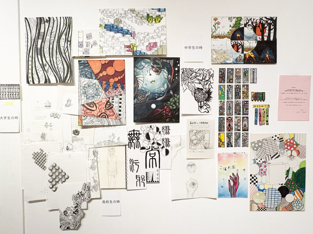展示スペースに入り、中学生の頃に描かれた作品、高校生の頃に描かれた作品、大学生の頃に描かれた作品、現在描かれている作品と、時系列に沿って作品が並びます。