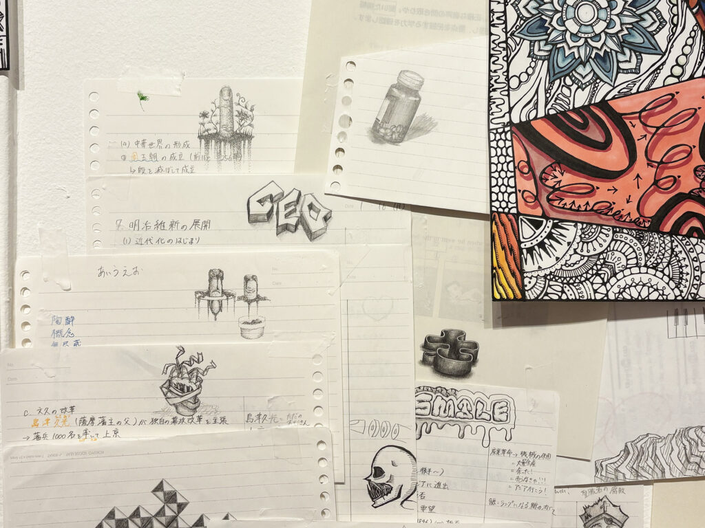 展示スペースに入り、中学生の頃に描かれた作品、高校生の頃に描かれた作品、大学生の頃に描かれた作品、現在描かれている作品と、時系列に沿って作品が並びます。