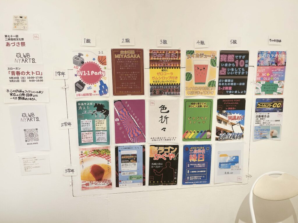 仮想の文化祭を作り上げて、さまざまなデザインのポスターが壁に並びます。