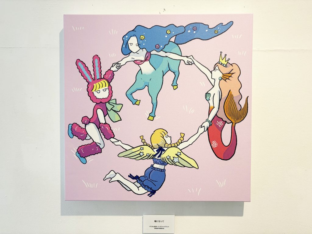 彼女が幼少期に玩具に囲まれて朝から夜まで人形ごっこをされていた記憶からインスピレーションを得て、ユニコーン、天使、人魚など、多様な種族が対等に暮らす世界観を表現されています。