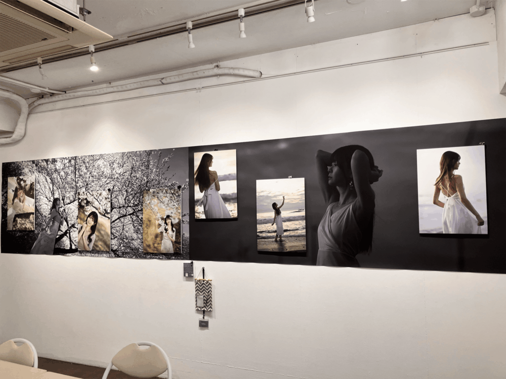 様々な衣装を身に纏ったモデルさんの写真が展示されています!