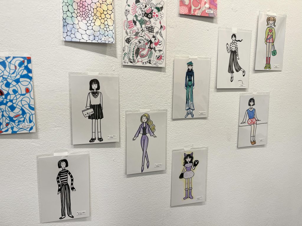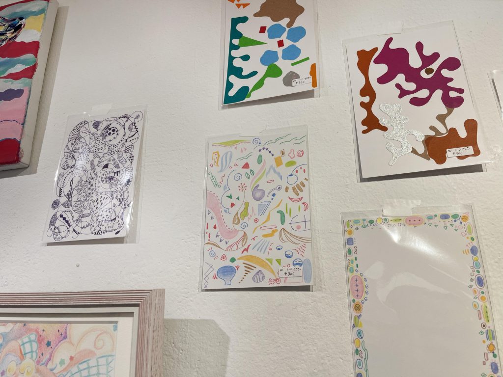 色鉛筆や水彩、ボールペンなどで描かれた作品がそれぞれの画材の魅力を引き出しており、全く異なったスタイルを見ることができ楽しいです!