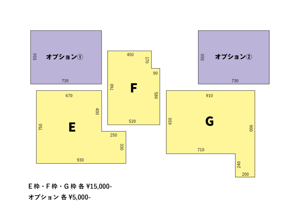 (例:E枠+オプション① 出展料合計¥20,000-)