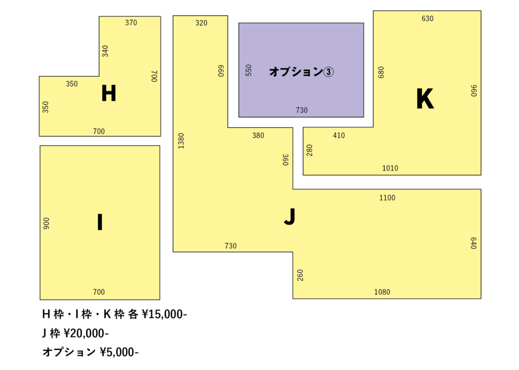 ※オプション①から③は、A枠からK枠のいずれかをお申し込みいただいた方のみ追加可能です。オプションのみのお申し込みは出来かねます。
