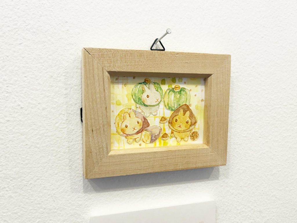 まりなさんは主にうさぎの絵を描かれています。高校生の頃にうさぎを飼い、その愛らしさに魅了されたことがきっかけでうさぎモチーフの作品を描くようになったとのこと。