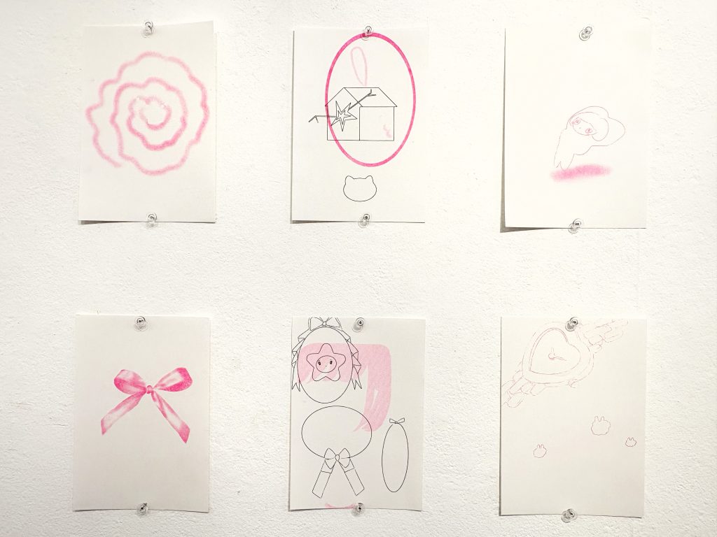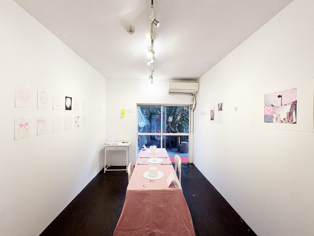 ピンク色の作品がたくさん並んだ愛らしい空間!