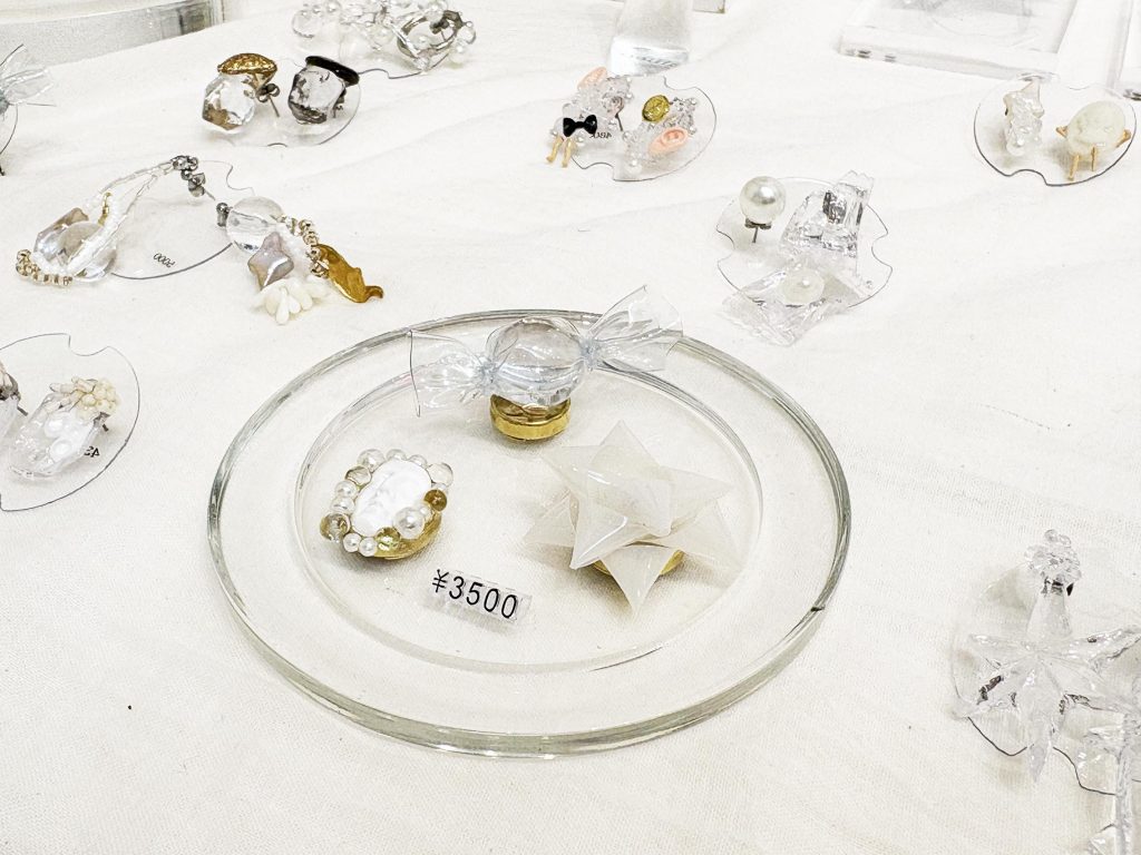 透明のアクセサリーなど、繊細で綺麗なアイテムを作られるaiueoさん。