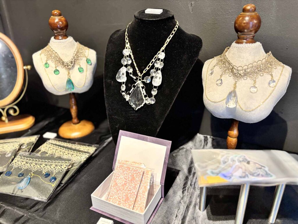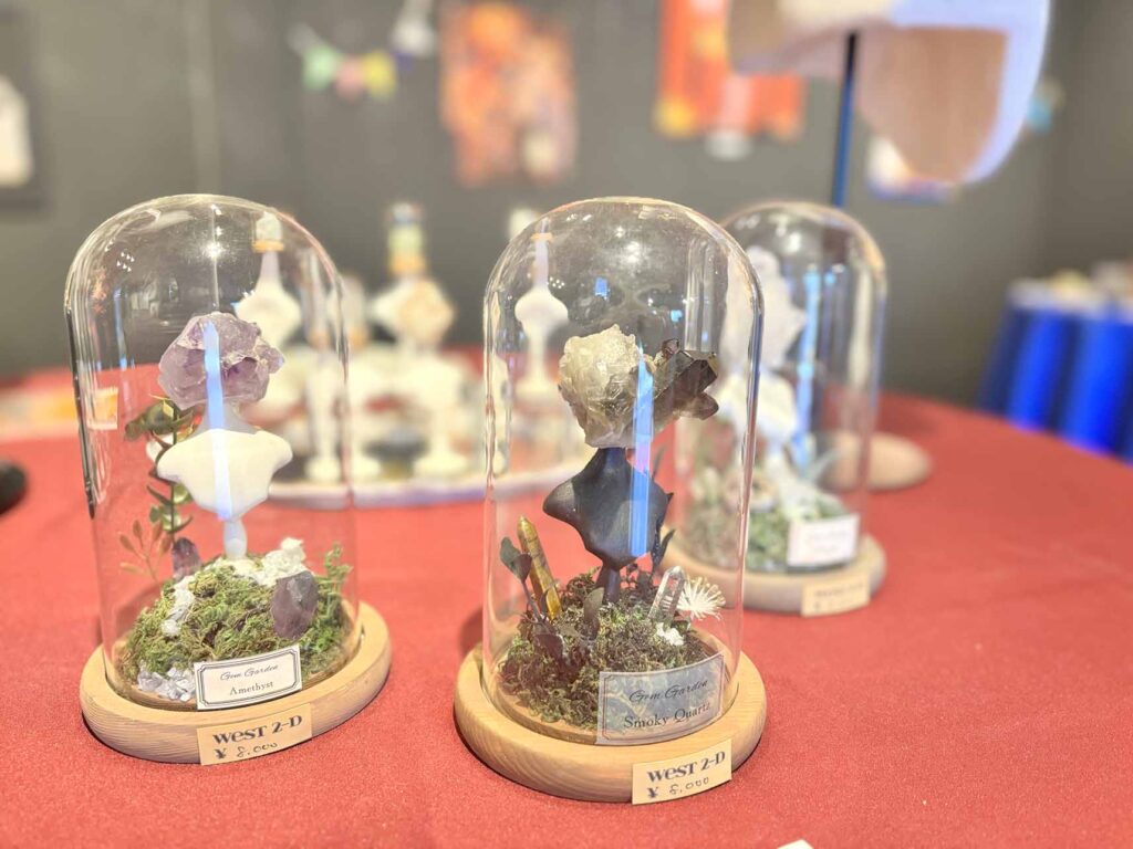 頭のデザインや小物の制作、インスタレーションや作品の細部にわたりすべてご自身が手がけており、