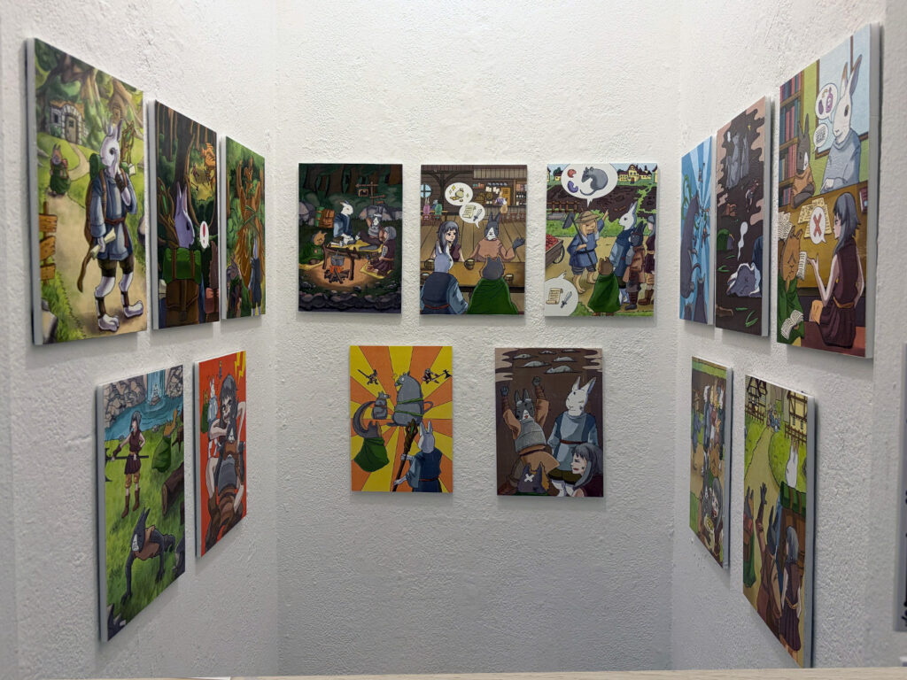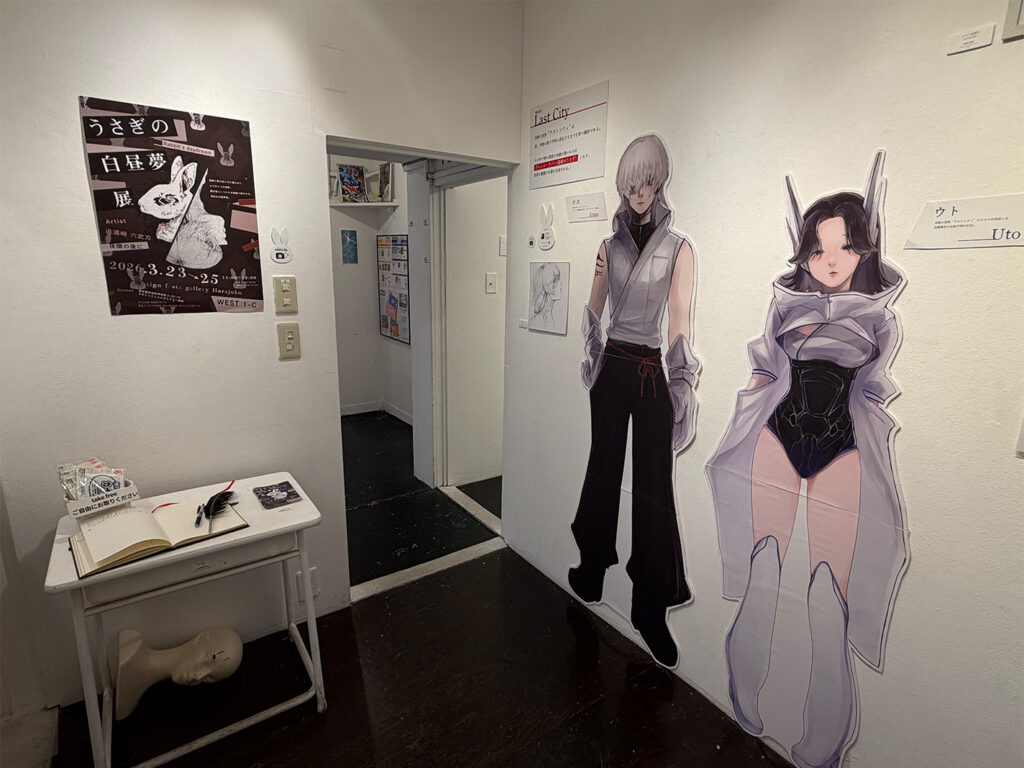 可愛らしいうさぎの立体造形作品と、オリジナルのオラクルカードのイラストが展示されています!!