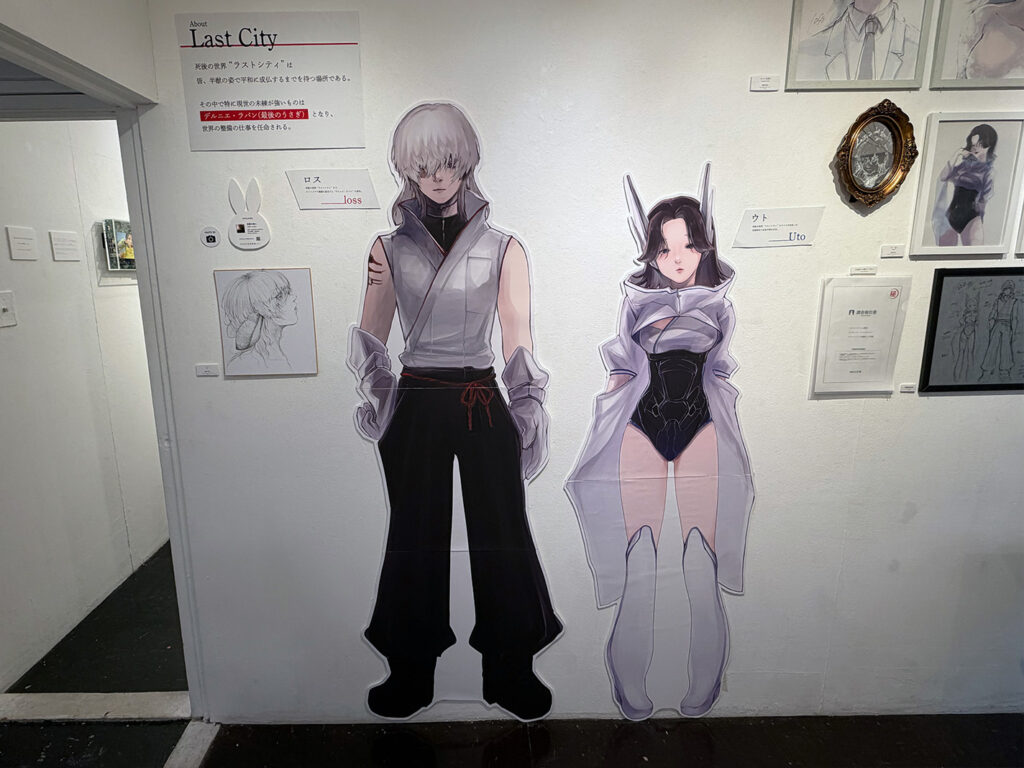 展示では”ラストシティ”についての解説や、それぞれのキャラクターの設定詳細、設定画などが作品と一緒に並べられています!