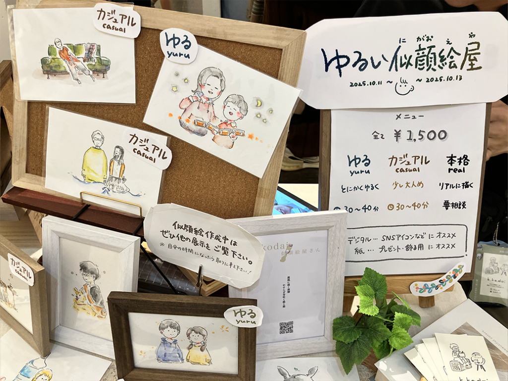 お洋服の作品はその場で試着ができたり、似顔絵はその場で描いてもらうことが可能です✨