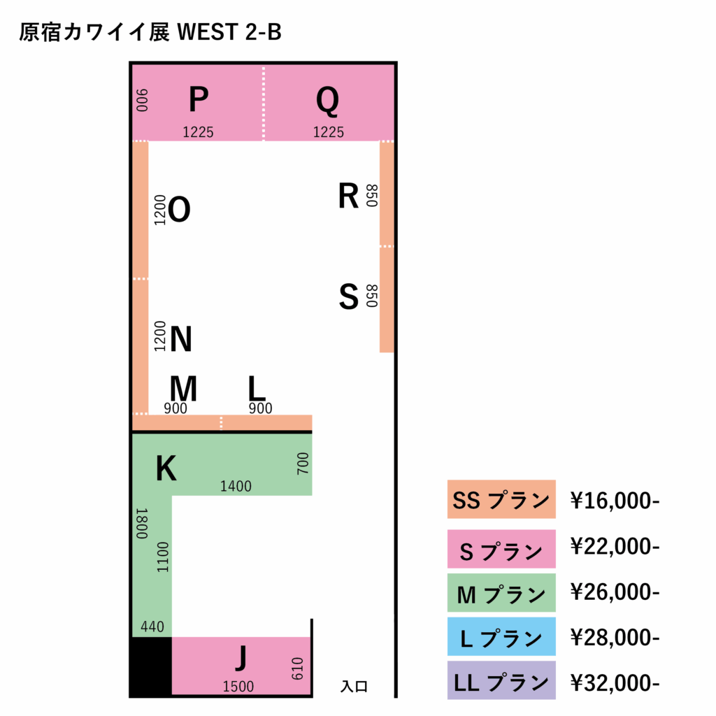 SSプラン(Lブース、Mブース、Nブース、Oブース、Rブース、Sブース)は壁面のみのブースです。
