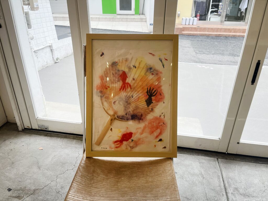 こちら和紙を用いて制作された金魚のうちわ作品です。和紙ならではのぼんやりで柔らかい境目が好きです!