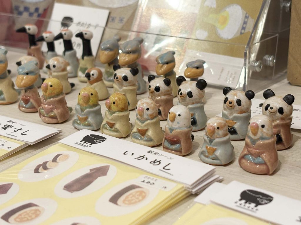 ステッカーやポストカードなどの紙雑貨から、ハンカチや傘、陶器の置物まで幅広いラインナップです!