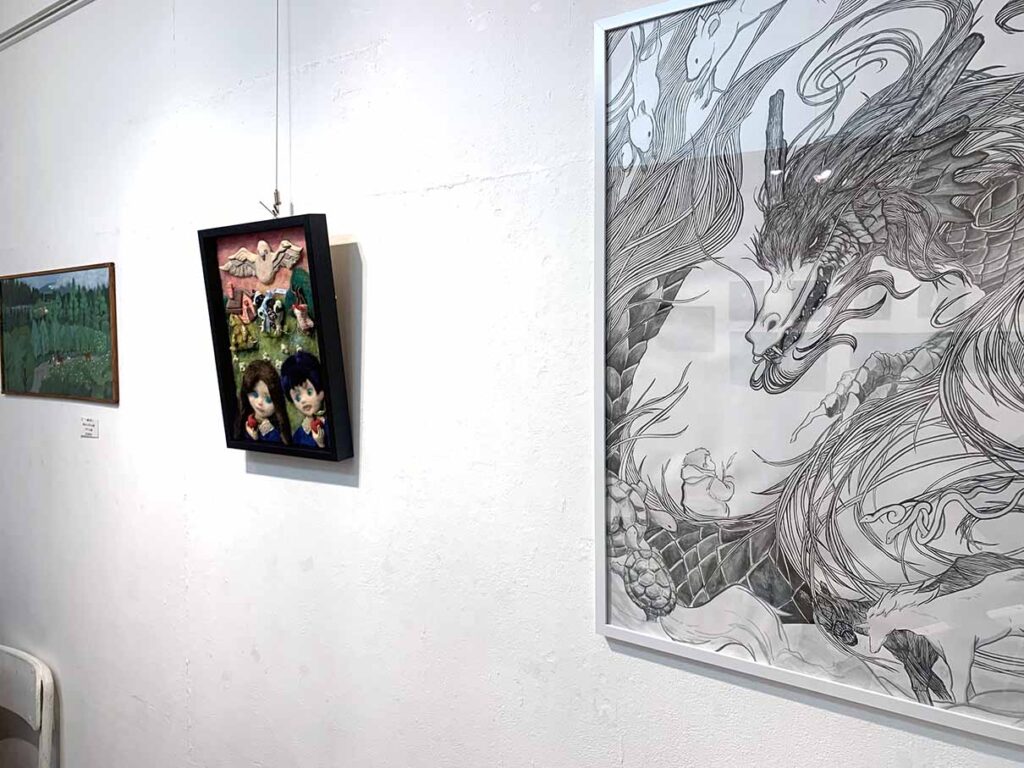 人物と動物をモチーフにした作品を手がける作家の3名による展示がWEST館で開催しました。