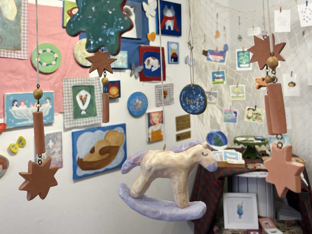 レイアウトにもすごくこだわっていて、布、糸、粘土など暖かさのある素材で飾っており、より和やかな雰囲気を出されています☀️