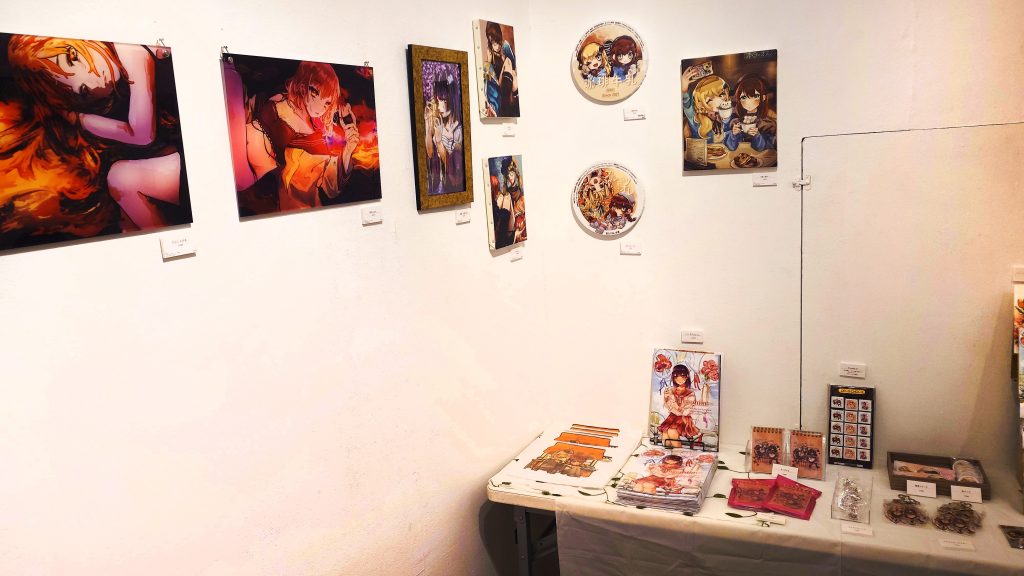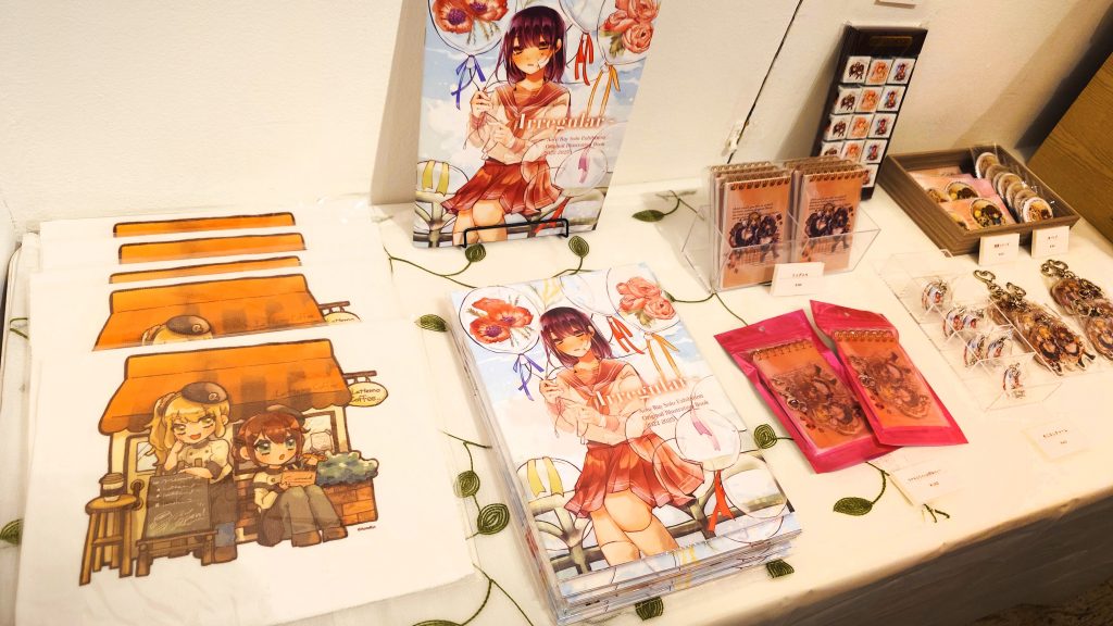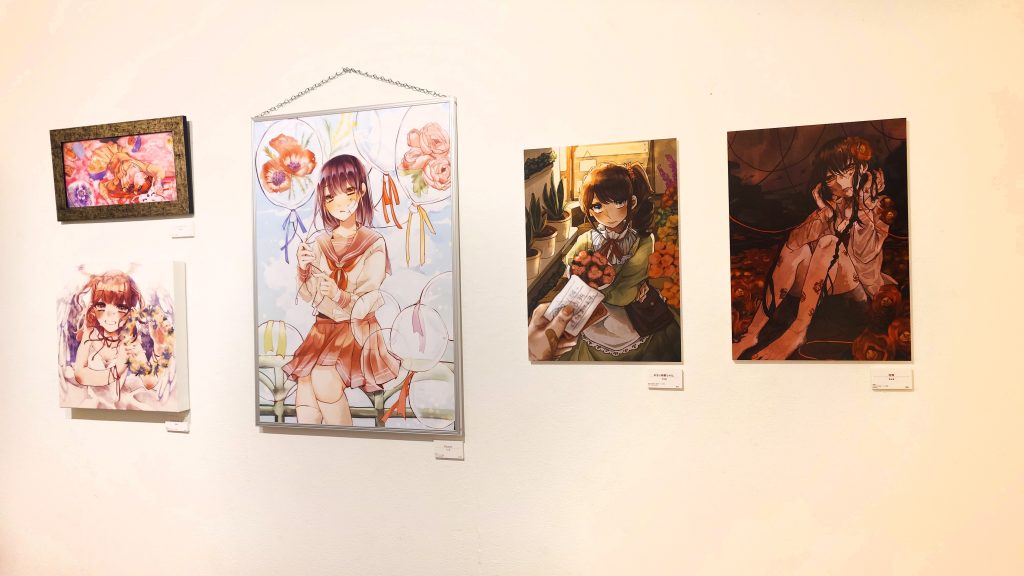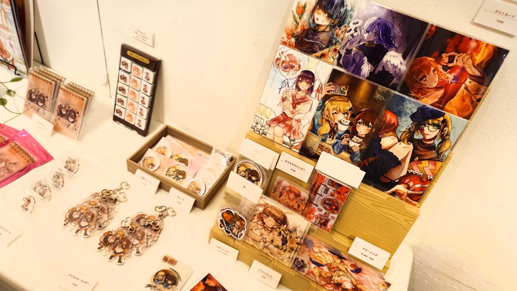 展示されている作品はポストカードやアクキー等のグッズとしても販売中!!
