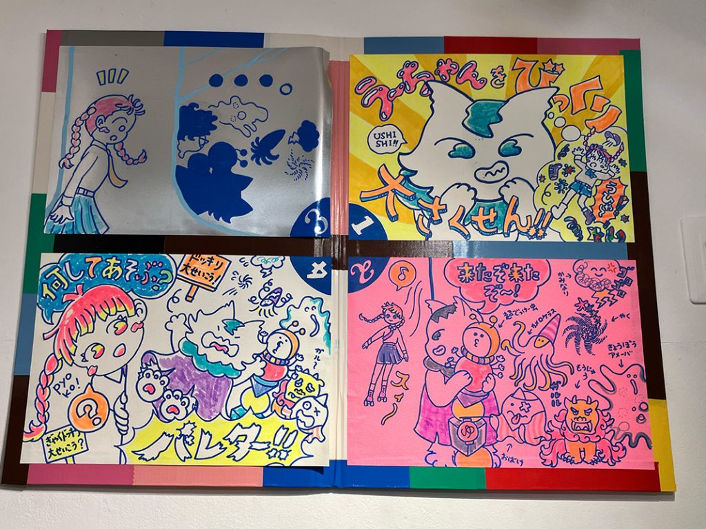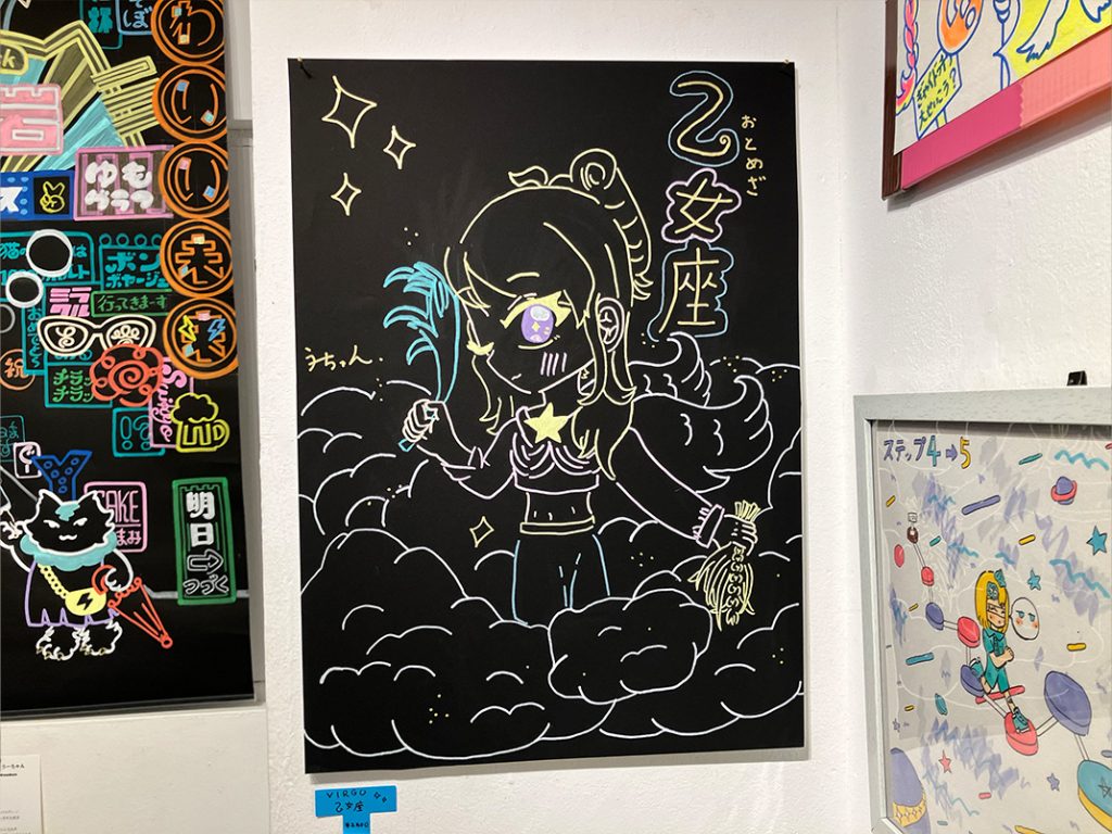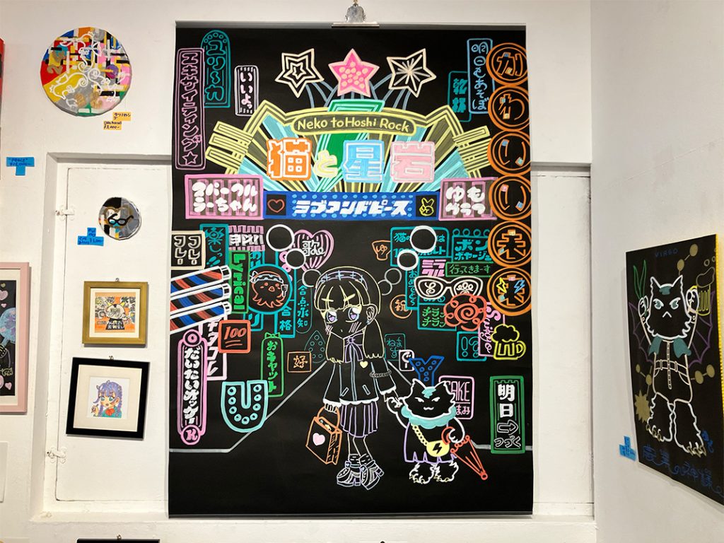 小学五年生のきらめきガール“スパークルうーちゃん”と西川口のアルコール中年“ゆもグラフ” によるアートユニット「猫と星ロック」のお二人による展示が開催中です!