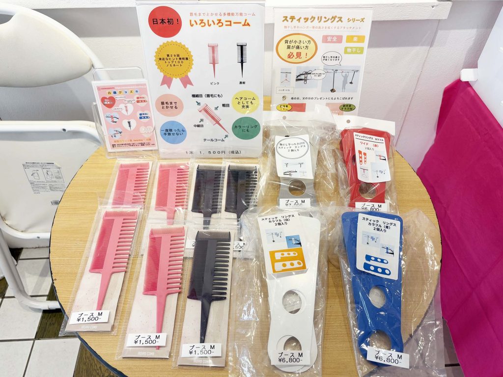 今回展示・販売いただいたのは「いろいろコーム」と「スティックリングス」。