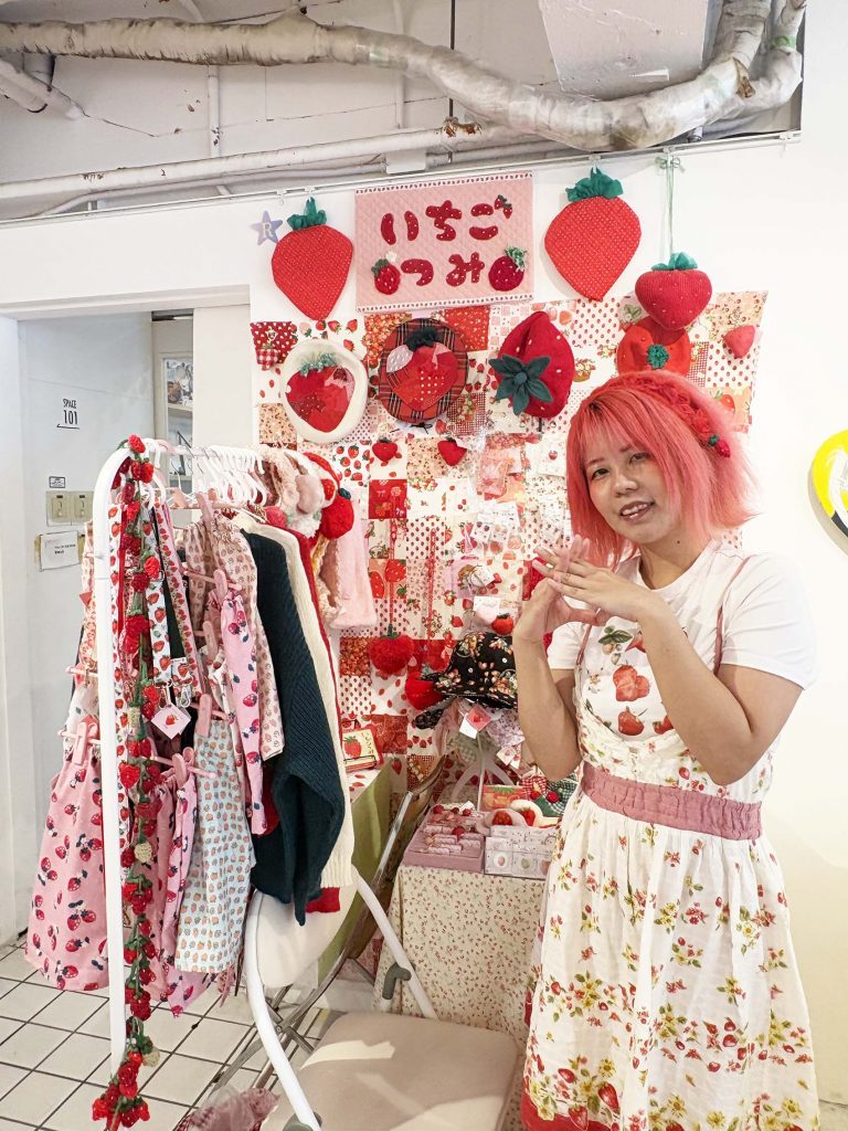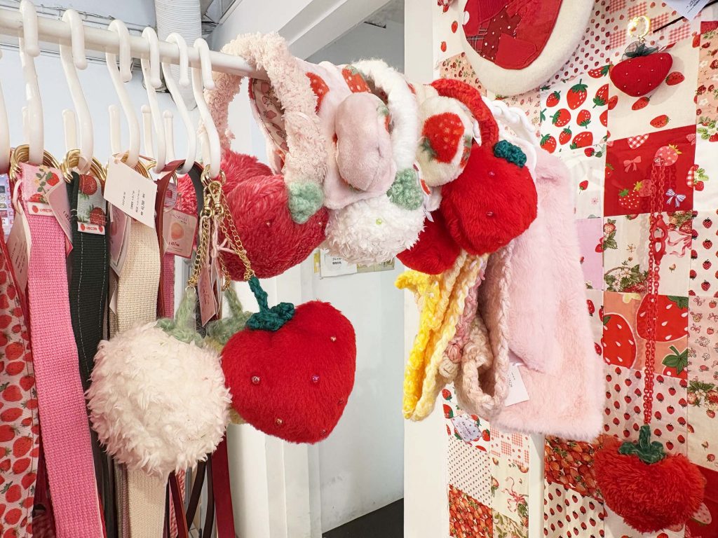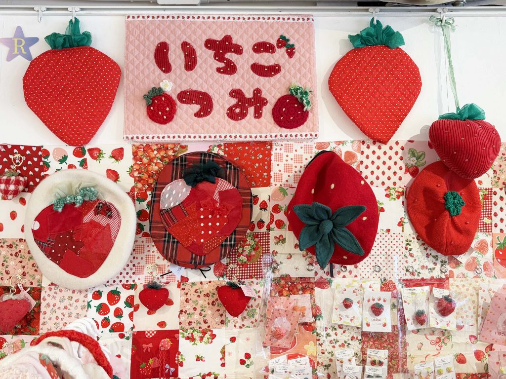 ベレー帽やイヤーマフ、カーディガンなどのファッションアイテムからアクセサリーまで幅広く、ハンドメイドのいちごアイテムがたっぷり並んだブースにワクワクします✨