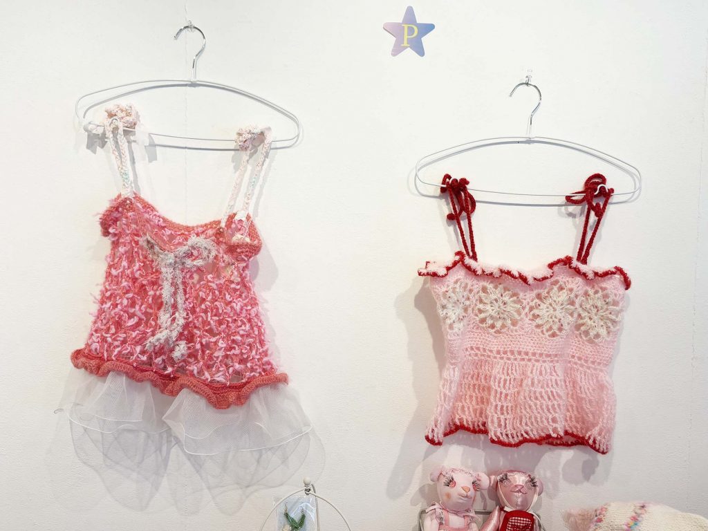 かぎ針編みで作られたファッションアイテムやアクセサリーがとってもキュート。