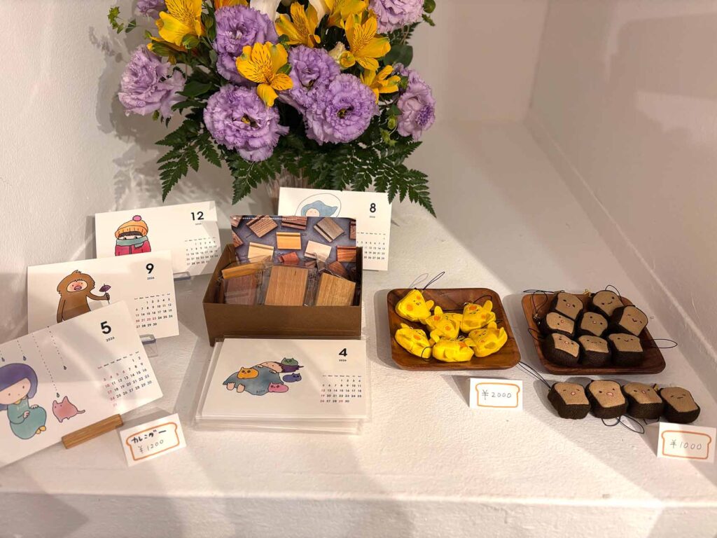 また、オリジナルのカレンダーや全て手縫いで作られたキーホルダーも販売しております。