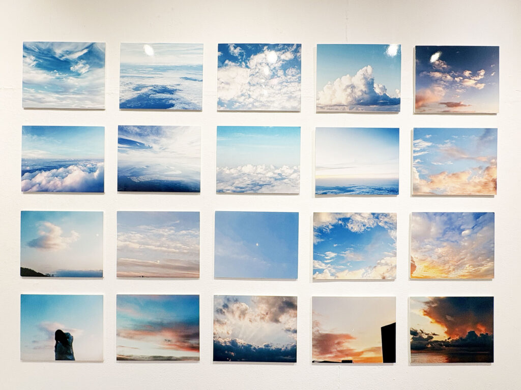 青い空と白い雲のコントラストが美しい写真作品が多い印象で、展示空間には爽やかな風がやさしく漂ってくるようです。