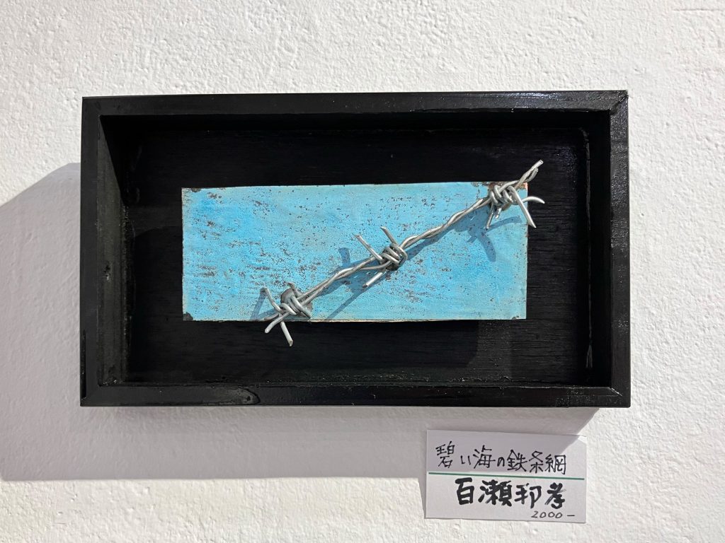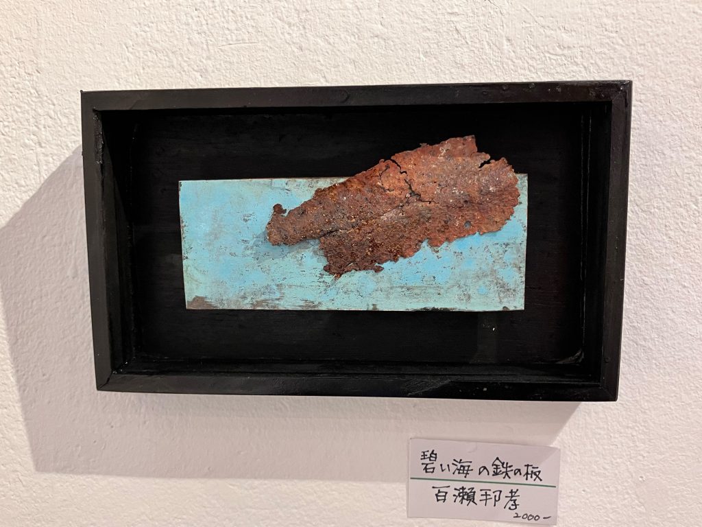 鉄の飾りと水色の背景の不思議なコントラストがとても目を惹く作品となっています!