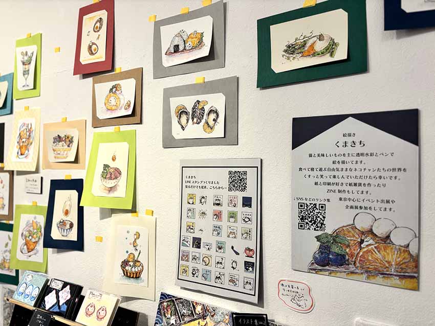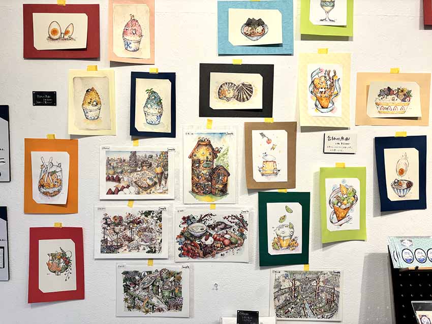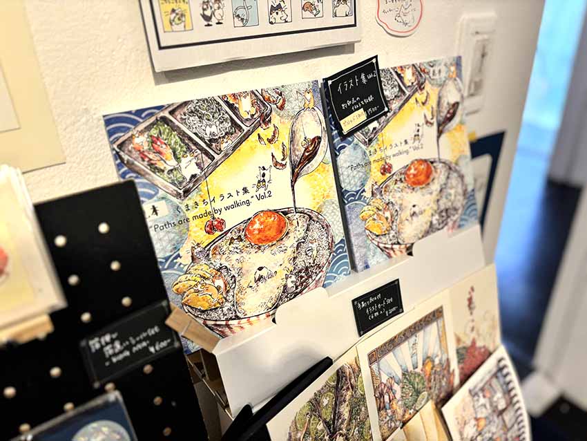 ポストカードサイズの原画や作品集、雑貨類も購入可能。