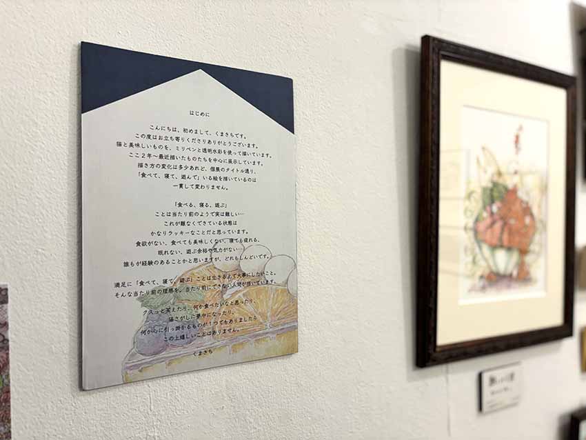 どの作品も温かみがあり、ご飯だけでないテーマが盛り込まれていたり、様々なところいる猫ちゃんたちの日常的な姿が見ていて遊び心を掻き立たせてくれます。